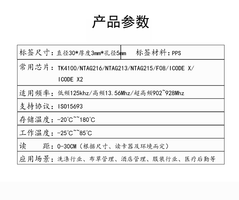 定制RFID标签耐高温防水洗衣币4100直径15MM洗涤管理PPS币标签