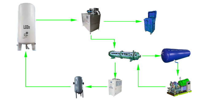 我公司将生产干冰时的二氧化碳气体加以回收利用,通过液化、分离等技术处理,得到食品级液体二氧化碳产品。