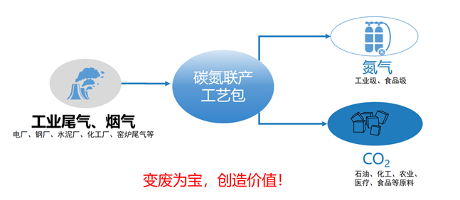 该装置技术通过一套工艺同时得到二氧化碳和氮气两种产品,成功解决了碳捕集领域高成本、低盈利的全球性难题。